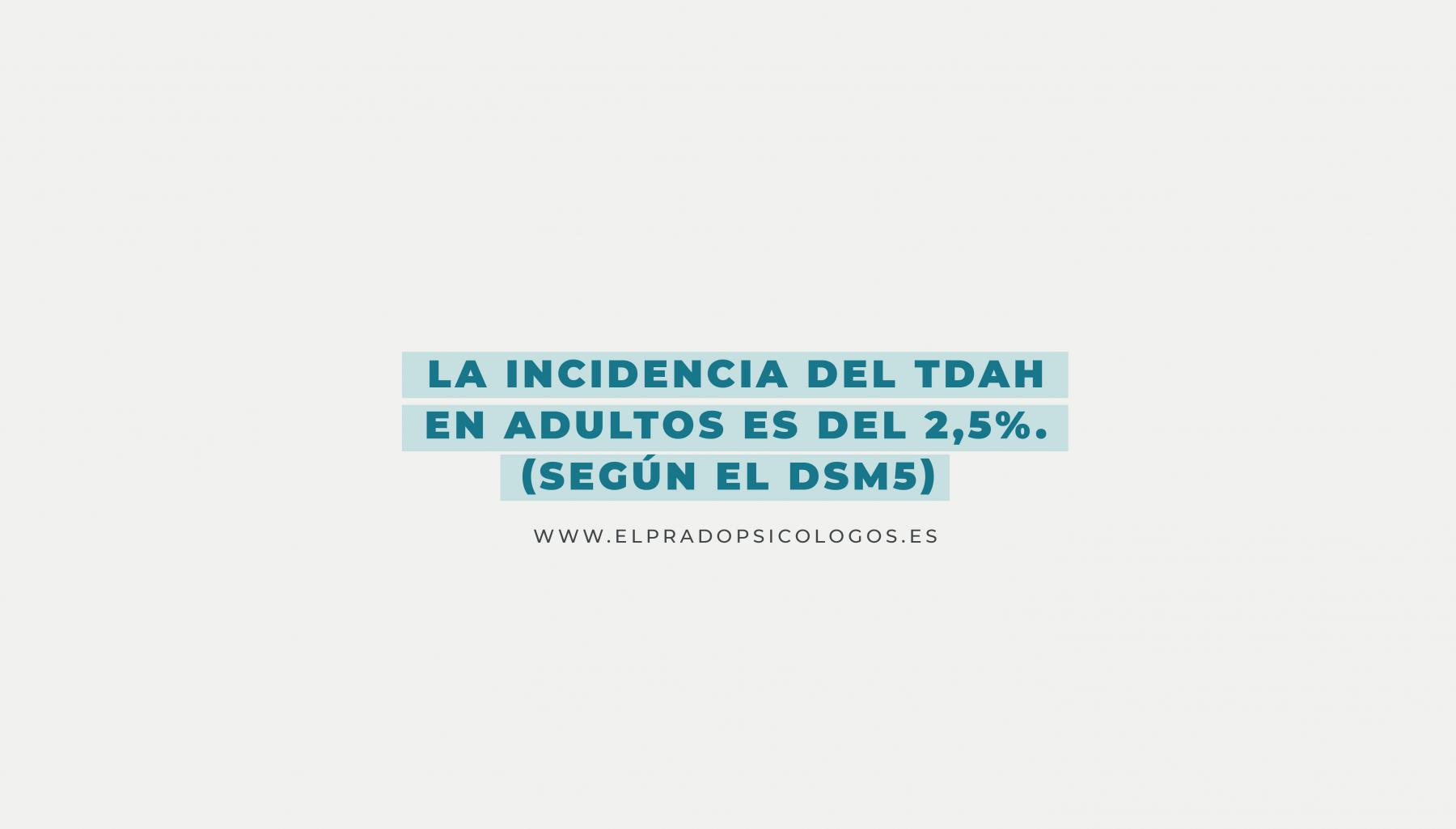 Según el DSM5, la incidencia del TDAH en adultos es del 2,5%, aunque es difícil hacer referencia a datos precisos ya que muchos adultos con hiperactividad nunca han sido diagnosticados. De hecho, a menudo reciben el diagnóstico cuando llevan a sus hijos a la consulta y se indaga en los antecedentes familiares. El problema es que este trastorno tiene hasta un 75% de componente genético.